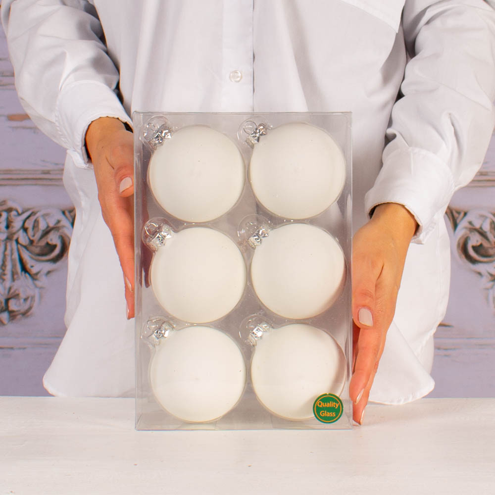 Contine: Set 6 globuri de sticla alb-mat 8 cm