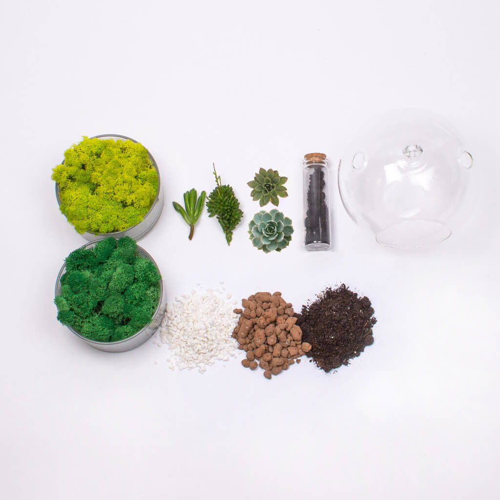 Aranjamentele cu plante si terariile pot contine muschi verde natural. Evitati pe cat posibil udarea muschiului, atunci cand udam celelalte plante. Muschiul verde natural este conservat si nu are nevoie de apa.