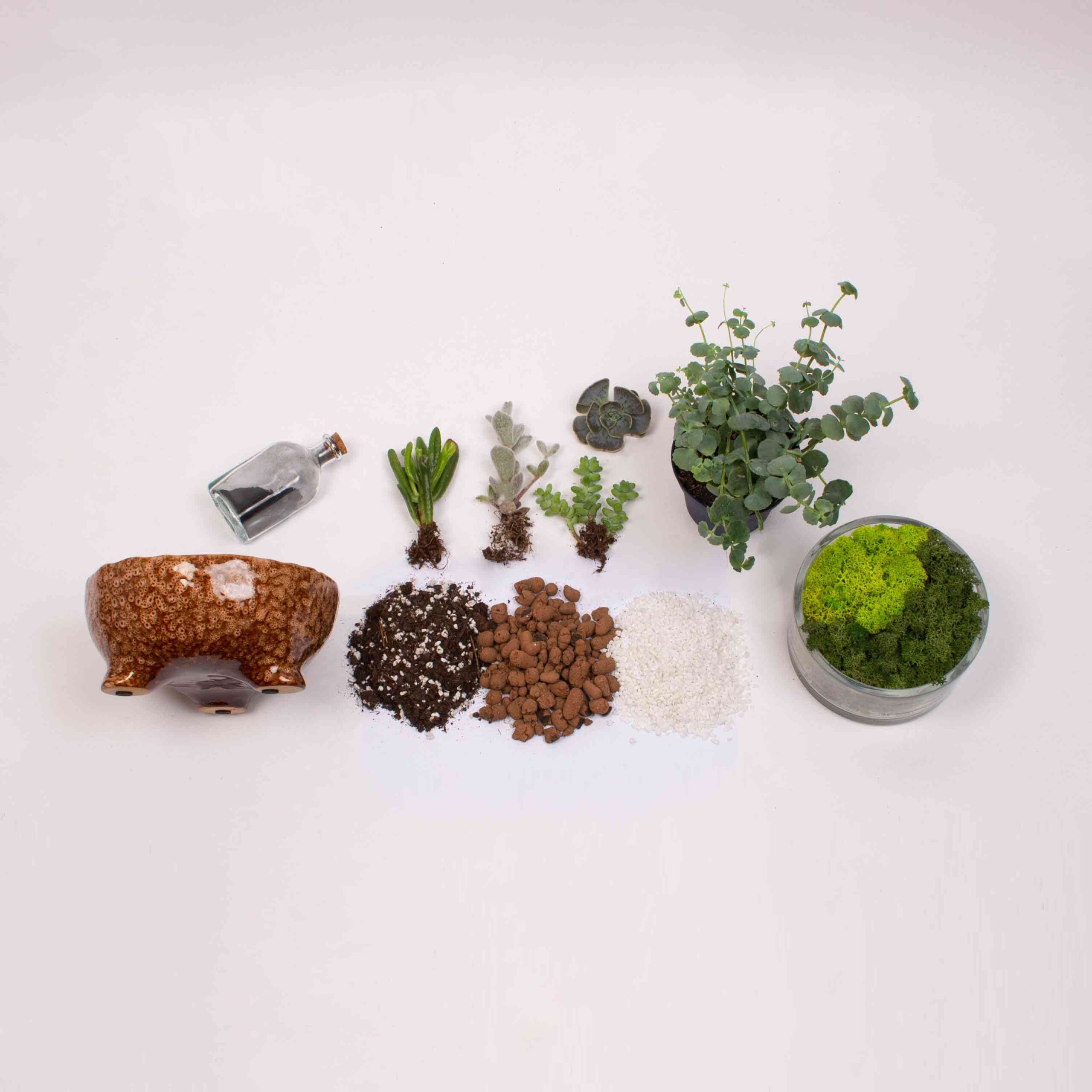 Aranjamentele cu plante si terariile pot contine muschi verde natural. Evitati pe cat posibil udarea muschiului, atunci cand udam celelalte plante. Muschiul verde natural este conservat si nu are nevoie de apa.