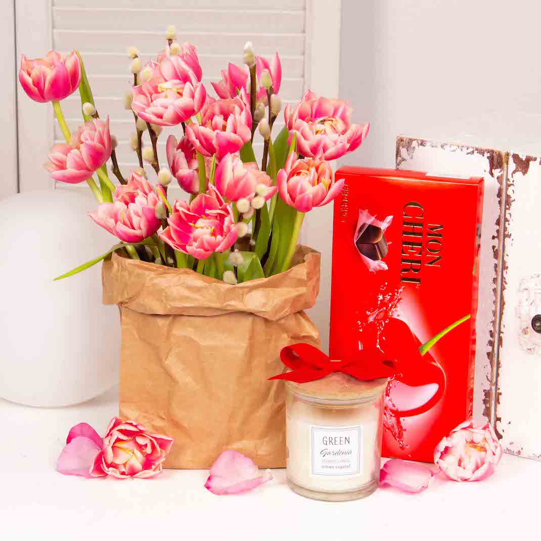 Cele mai speciale ocazii au nevoie de cadouri pe masura. Comanda acest cadou cu lalele, lumanare si praline de ciocolata si ulei de relaxare si transforma o zi normala intr-o amintire frumoasa. Gandit special pentru femei, indiferent ca vrei sa il daruiesti mamei tale, iubitei, colegelor sau altor femei pe care le cunosti, cu siguranta vor aprecia ca te-ai gandit la ele.