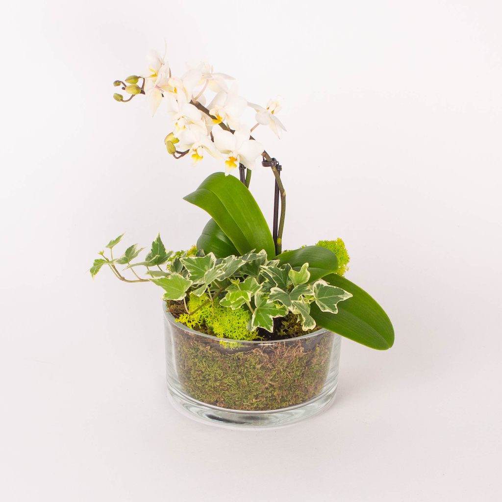 Pretuim tot ce are natura mai bun si mai frumos de oferit, asadar am pregatit acesta orhidee in cilindru de sticla, care iti va umple casa de lumina si dorinta de viata. Aranjamentele cu plante au darul de a scoate la iveala bucuria lucrurilor aparent simple, iar noi le iubim pentru asta. Este perfect pentru acasa sau pentru birou, pentru tine sau un cadou perfect pentru cineva drag.