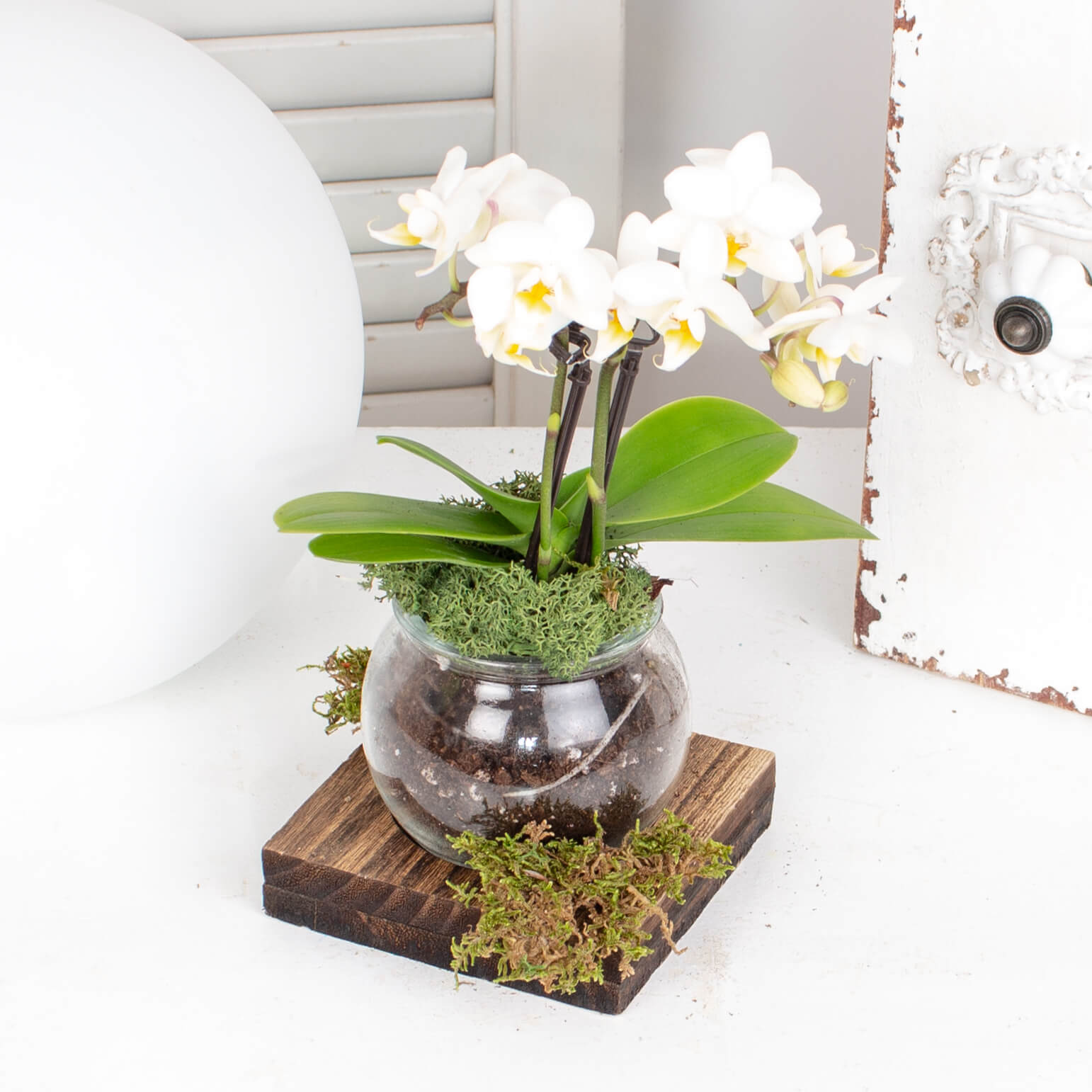 Pretuim tot ce are natura mai bun si mai frumos de oferit, asadar am pregatit acest terariu cu planta phalenopsis care iti va umple casa de lumina si dorinta de viata. Aranjamentele cu plante au darul de a scoate la iveala bucuria lucrurilor aparent simple, iar noi le iubim pentru asta. Este perfect pentru acasa sau pentru birou, pentru tine sau un cadou perfect pentru cineva drag.