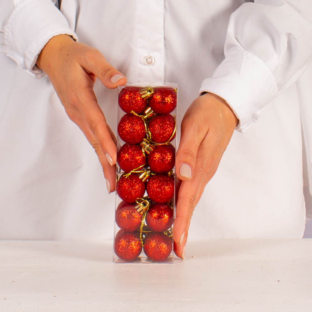 Contine: Set de 24 globuri rosii de plastic cu sclipici 3 cm