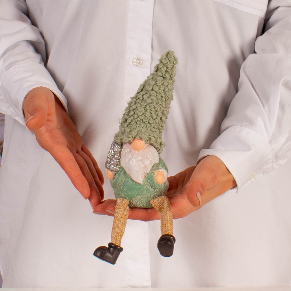 Spiridus din ceramica cu picioarele atarnate, verde, 7x6x21 cm