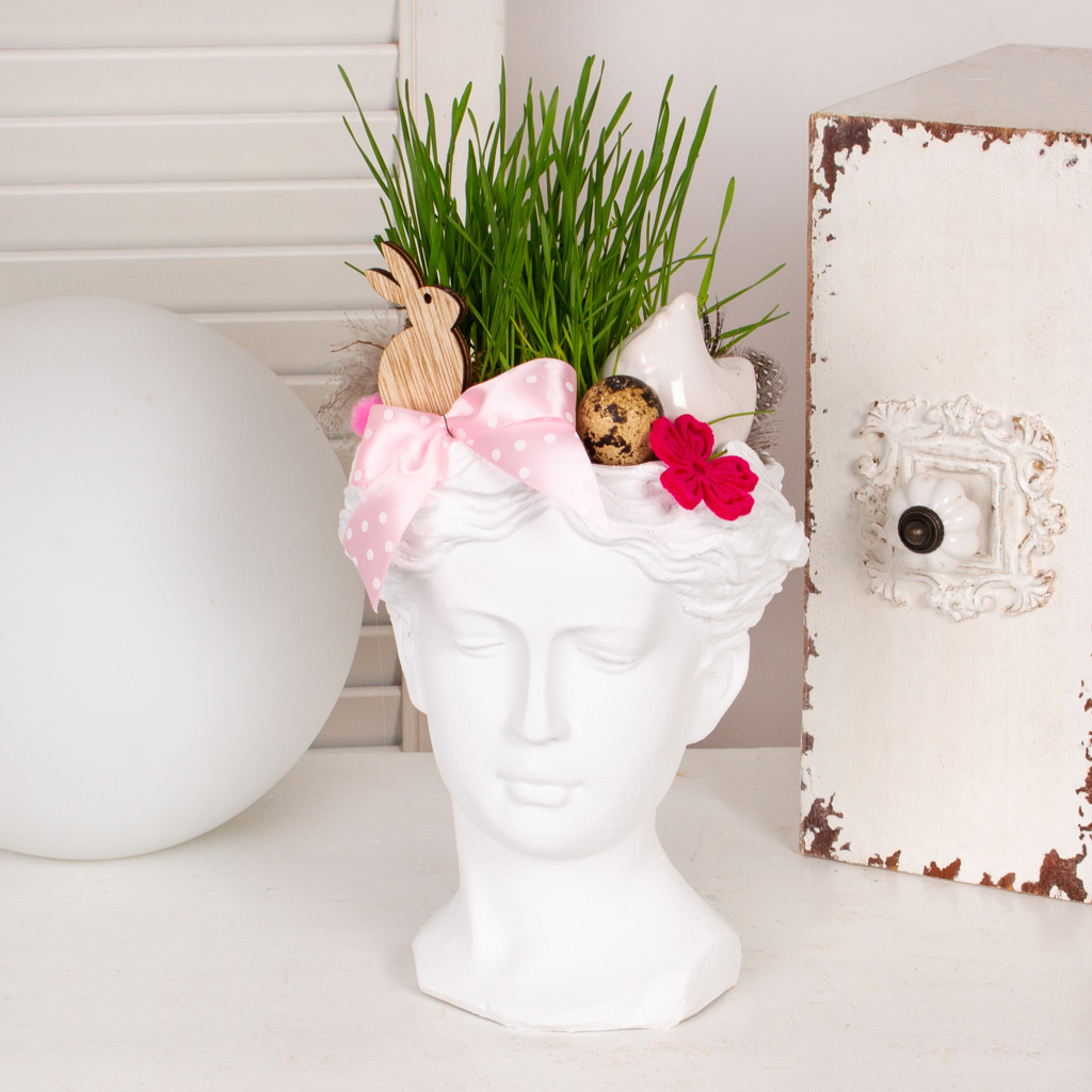 Sarbatorile sunt pentru noi si pentru cei mai apropiati sufletelor noastre. Acest aranjament de Paste cu grau incoltit in vaza cap femeie Venus precum si celelalte aranjamentele de Paste cu ,oua, ciupercute, iepurasi, gainuse si gargarite vor fi in centrul atentiei oriunde le vei aseza. V-am pregatit aranjamente cu oua rosii, aranjamente cu decoratiuni cosuri cu iepurasi si plantute, cosuri cu bunatati si cosuri pentru oua pentru sarbatoarea de Paste. Aceste aranjamente va vor bine dispune la birou in timp ce lucrati sau acasa in timp ce pregatiti cozonacii si vor decora frumos masa de Paste. Un aranjament de Paste este cel mai frumos cadou pentru prieteni si familie.