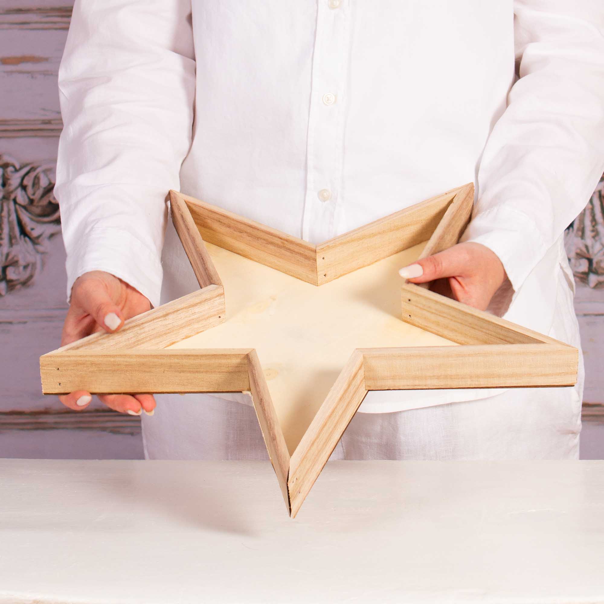 Contine : Bol, in forma de stea din lemn, 40 x 40 x 3,5 cm