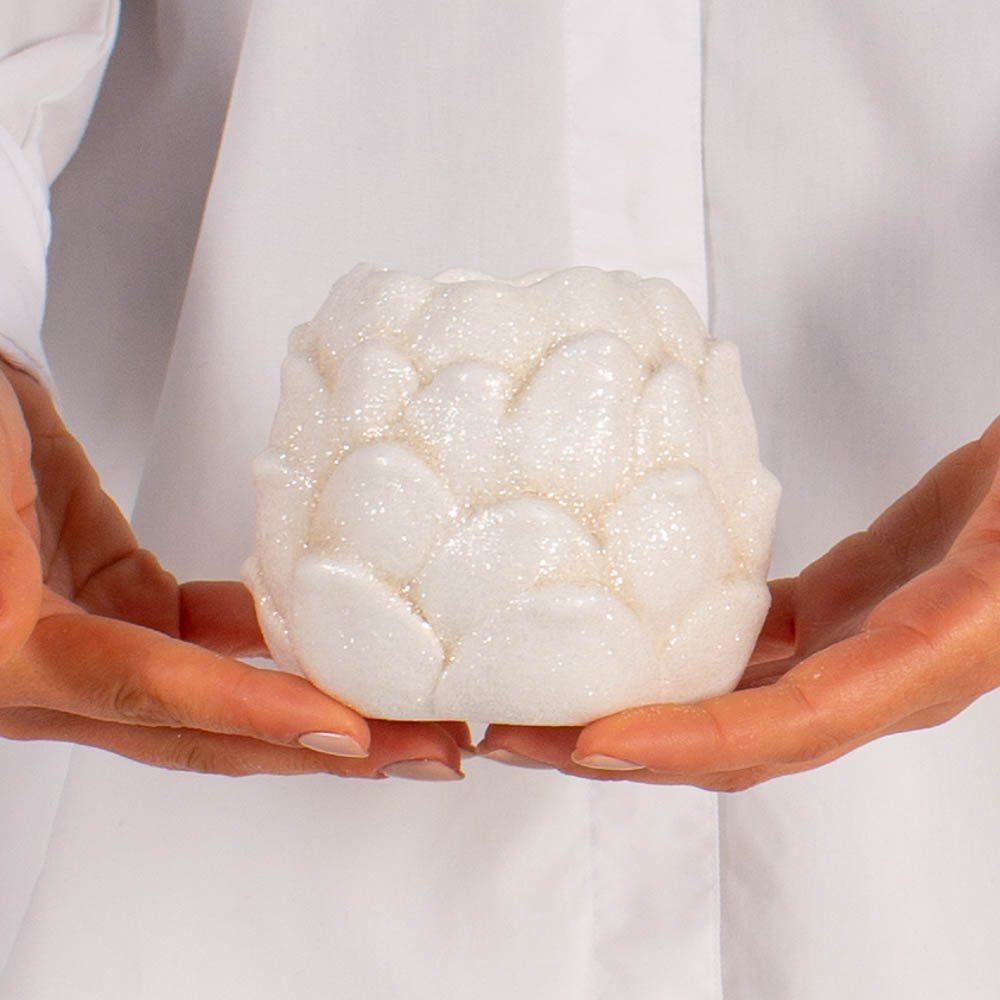 Contine : Suport de lumanare in forma de con de brad din portelan 10,7 x 10 x 8, 8 cm, crem