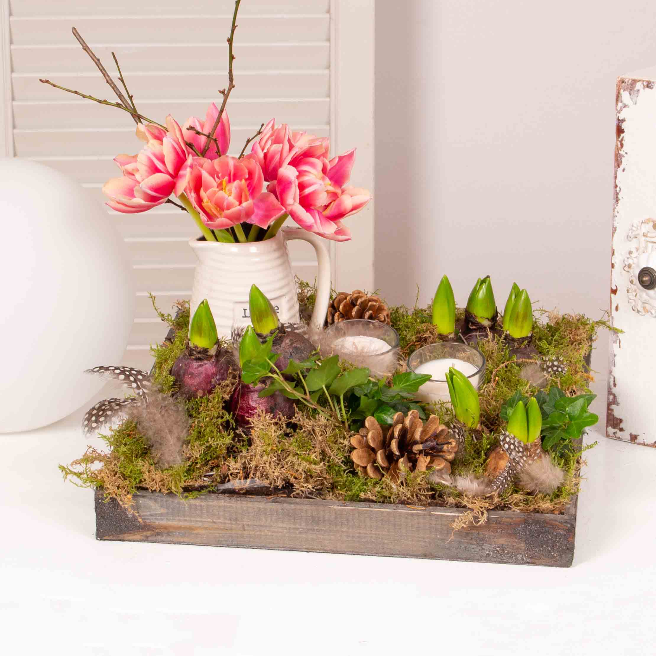 Florile sunt cel mai frumos cadou al naturii. Fie ca vrei sa-i faci o surpriza frumoasa mamei, surorii sau iubitei tale, acest aranjament cu bulbi de zambila si alte decoratiuni este cea mai buna alegere. Adauga un mesaj din inima si vei reusi sa o faci sa se simta iubita si rasfatata.