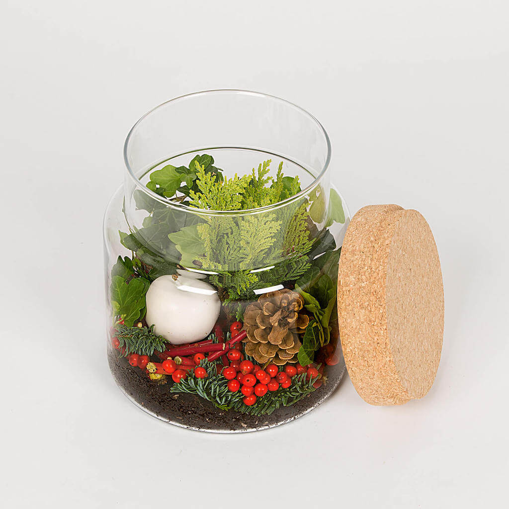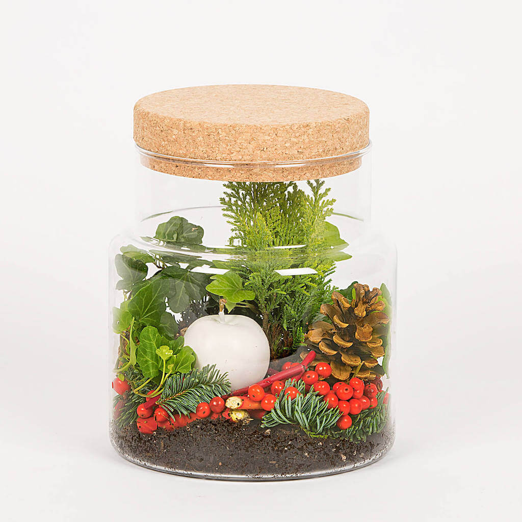 Craciunul il petrecem alaturi de familie si prieteni. Alaturi de oamenii pe care ii pretuim si carora le facem cadouri din suflet. Iar terariile si aranjamentele cu plante sunt cadourile care transmit gandurile noastre bune. Inspirati de magia sarbatorilor de iarna am realizat acest terariu cu iedera, confiere si mere cerate. Cu un design deosebit si usor de intretinut, cu siguranta va infrumuseta orice casa. Si pentru ca sarbatorile de iarna au parfum de scortisoara si portocale, am ascuns printe aceste plante delicate o surpriza parfumata care ne va aduce aminte de copilarie.