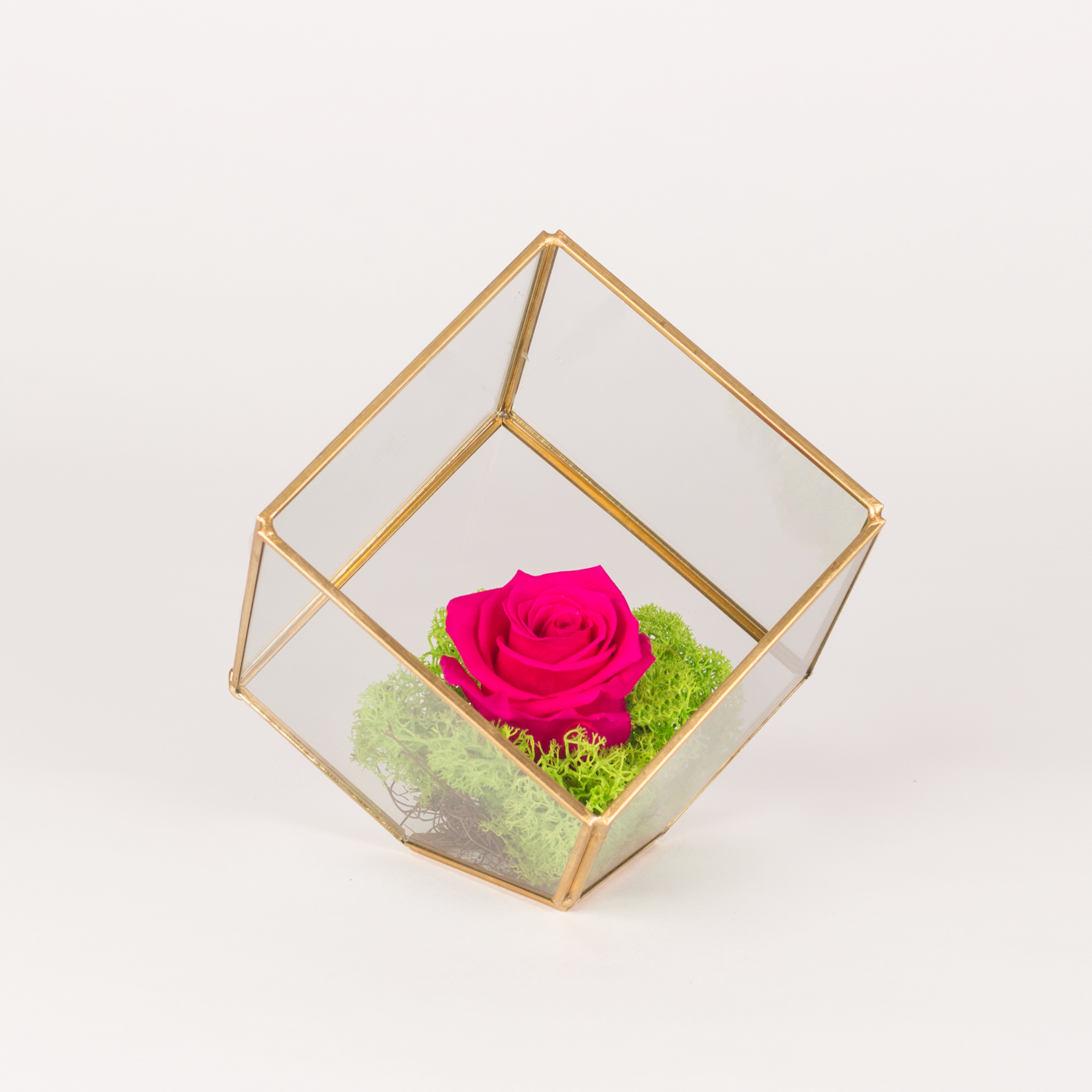 Cub L13cm h20cm, trandafir conservat roz, muschi verde