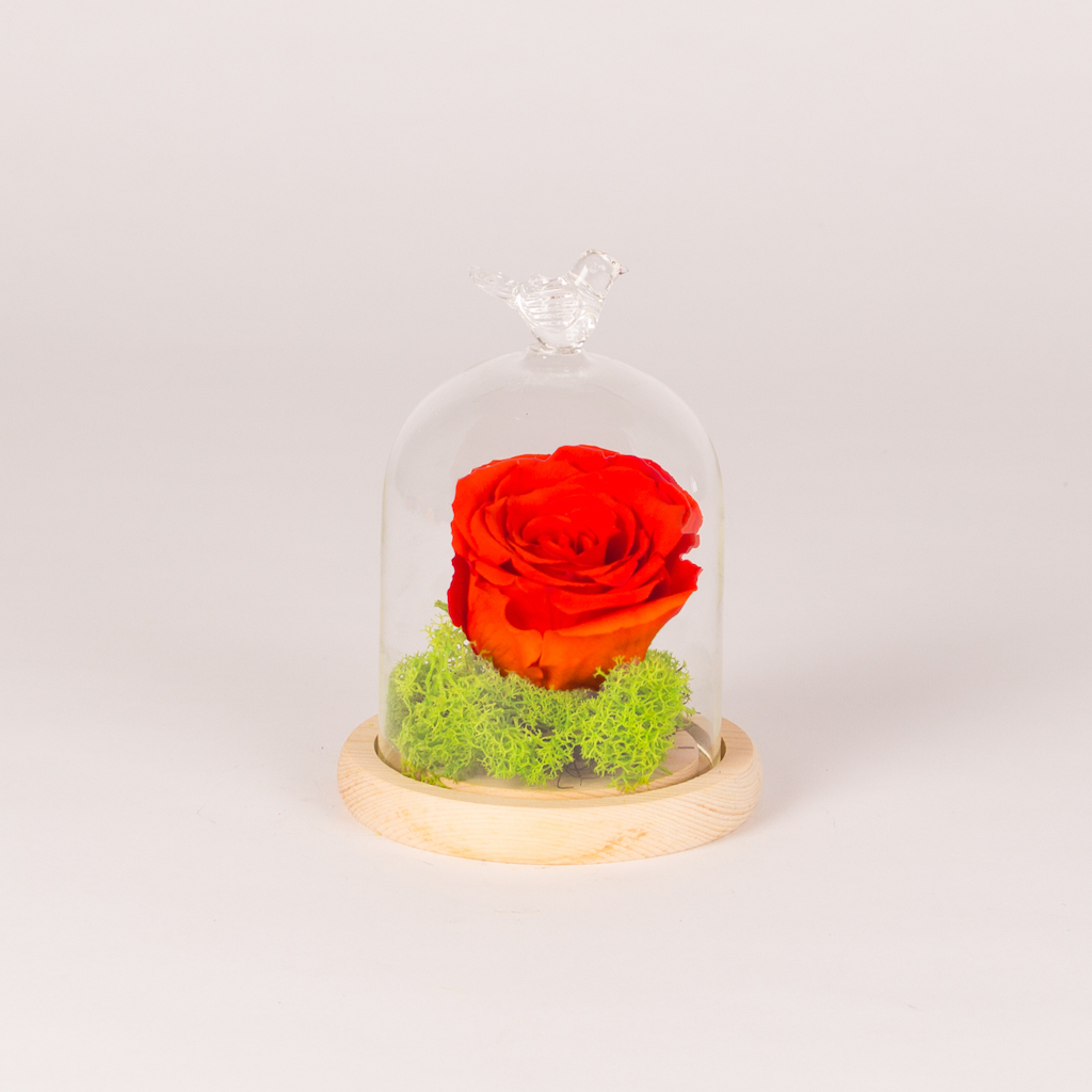 Trandafir portocaliu conservat in clopot de sticla