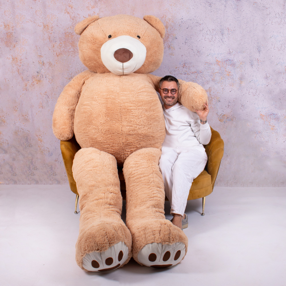 Cu totii avem nevoie de un prieten bun pe care sa-l imbratisam, care are timp sa ne asculte si sa ne dea sfaturi. Ursul de plus gigant de 3,4m este un bun prieten de joaca, dar este potrivit si pentru a putea fi folosit ca perna pufoasa, oferind un sprijin minunat pentru somnul odihnitor sau pentru o pauza relaxanta in timpul zilei. Este un cadou potrivit pentru persoana iubita, pentru copii, adolescenti sau pentru oricine apreciaza gesturile pline de afectiune.