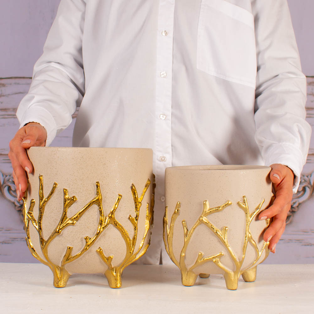 Fii primul care adaugi o recenzie la „Vas cu crengi din ceramica bej / auriu”